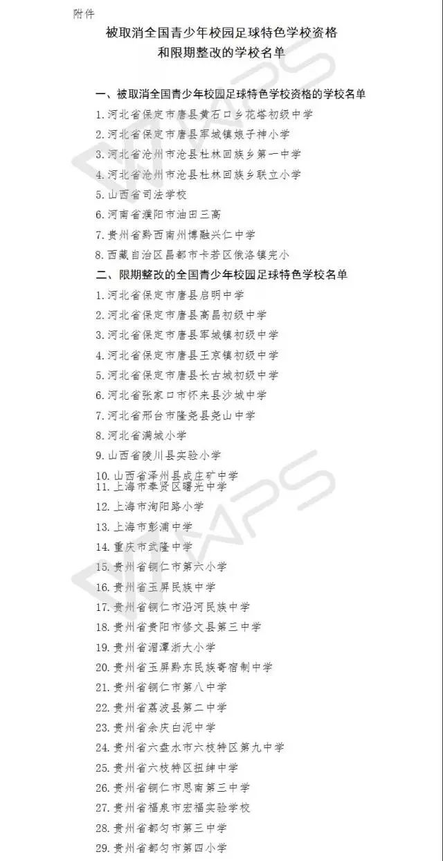 附件:被取消全國青少年校園足球特色學(xué)校資格和限期整改的學(xué)校名單