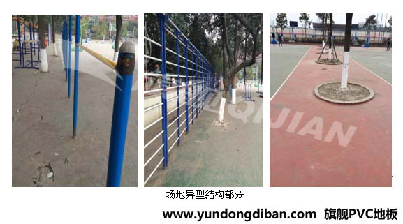 四川省綿陽市綿陽中學(xué)室外球場工程------工程地處綿陽市培城區(qū)。項(xiàng)目總工程面積為8800㎡;其中場地分為:籃球場地1區(qū)、籃球和羽球場地2區(qū)、山頂籃球場地3區(qū)這三部分;其中籃球場地1區(qū):面積約為5071㎡,地面基礎(chǔ)為PU,多處存在破裂、起鼓、斷層,場地周邊有戶外路徑、健身器械、樹坑,毗鄰塑膠跑道圓弧區(qū)等異型結(jié)構(gòu),且四周及中間還留有排水系統(tǒng)等異型區(qū)域,且地面平整度很差,有的部分高低落差在3-8CM之間;籃球和羽球場地2區(qū):面積約為2565㎡,地面基礎(chǔ)也是PU, 70%以上地面基礎(chǔ)多處破裂,起鼓,周邊也存在樹坑、排水系統(tǒng)等異型區(qū)域;地面平整度也很差,其高低落差2-5CM之間;山頂籃球場地3區(qū):面積約為1250㎡,屬山頂區(qū),地面積基礎(chǔ)為PU,其50%以上地面基礎(chǔ)出現(xiàn)大面積起皮、起鼓問題,場地中間有樹坑等異型位置;且地面易積水。如下圖所示: